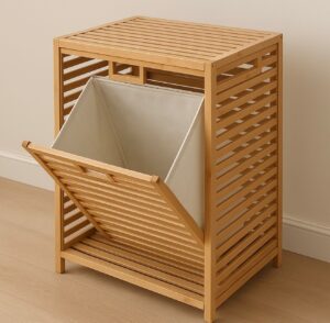 סל כביסה פתיחה קדמית מבמבוק דגם “תאי”
