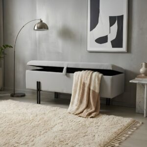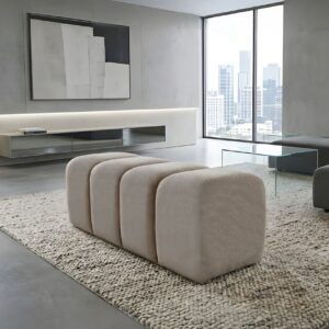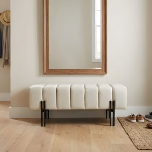 הדום מלבני בריפוד בד בוקלה בצבע לבן