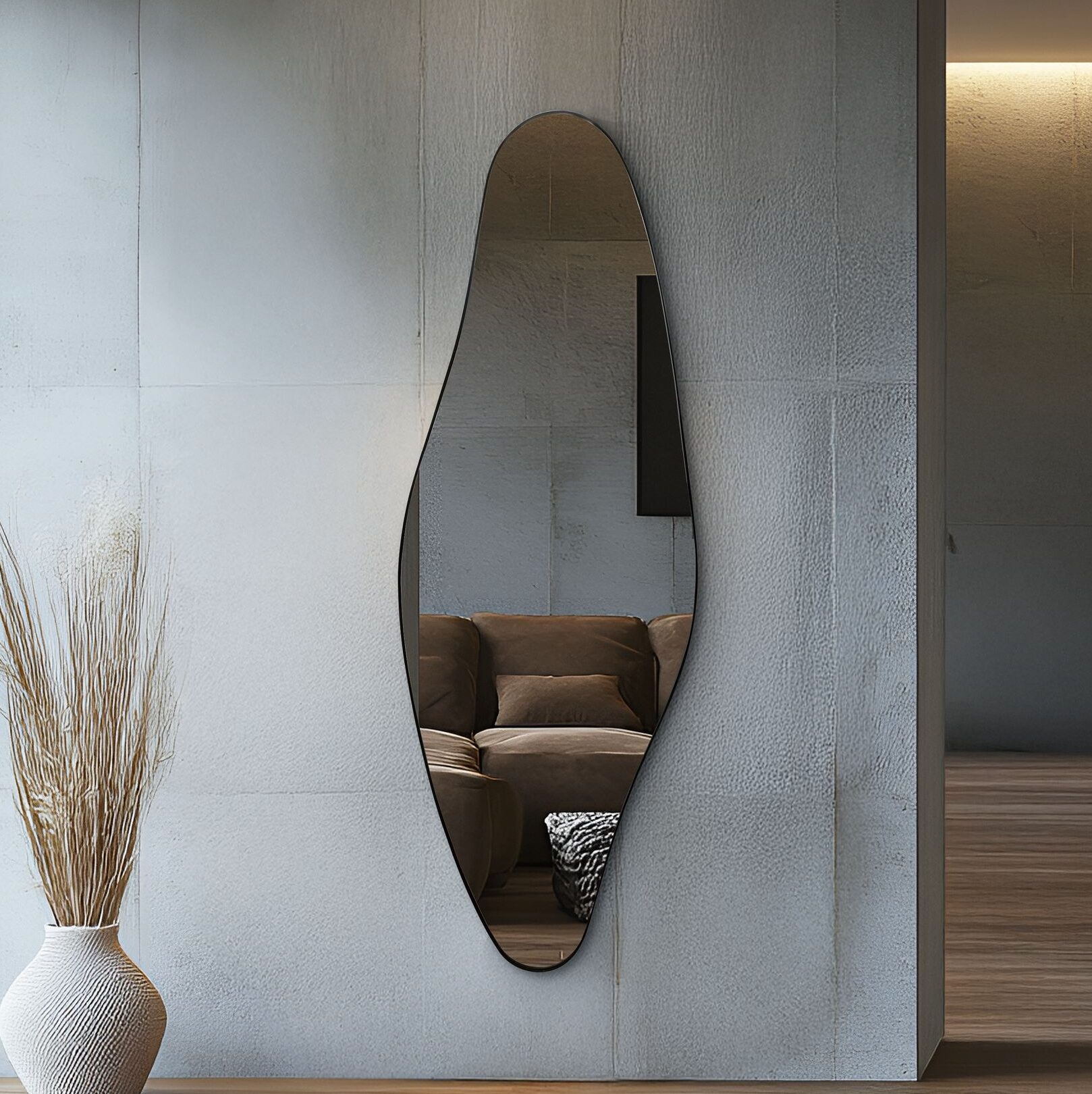 מראה אלגנטית עם מסגרת דקה בגוון שחור, בעיצוב מינימליסטי ומעודן.