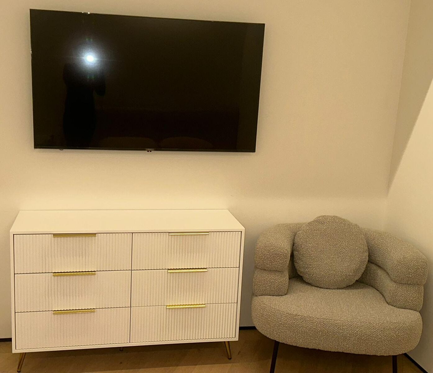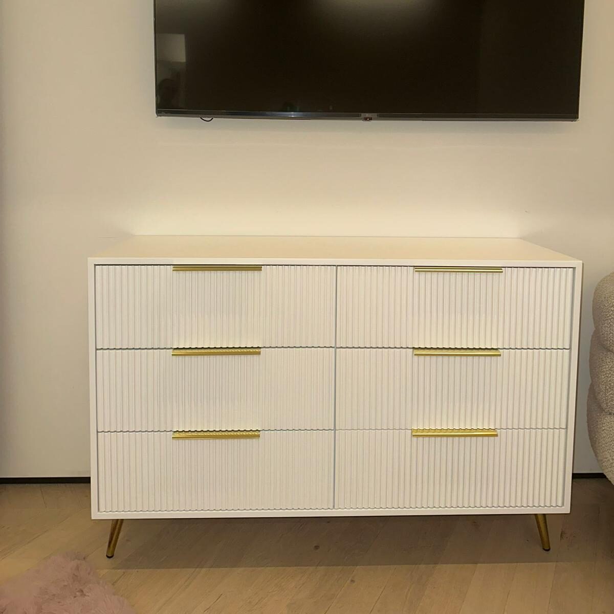 קומודה מעץ לבן עם דוגמת פסים – עיצוב אלגנטי ושפע של אחסון