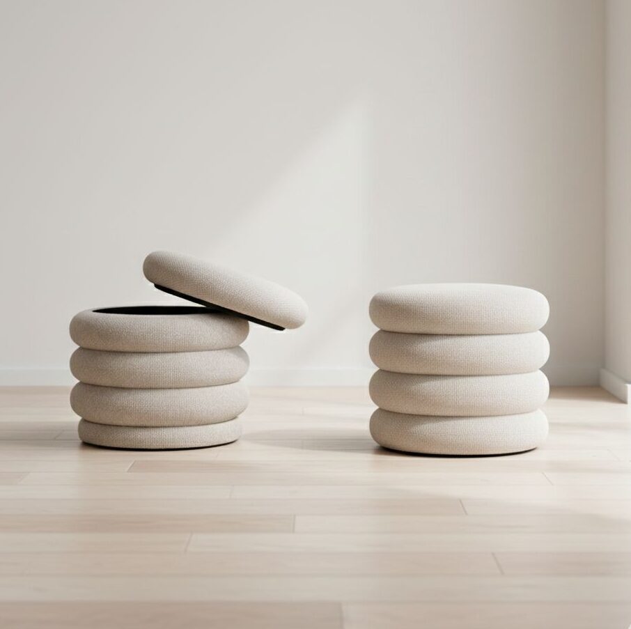 הדום עגול ומעוצב, הנפתח לתא אחסון פנימי ושימושי ומשמש גם כפתרון ישיבה נוח.