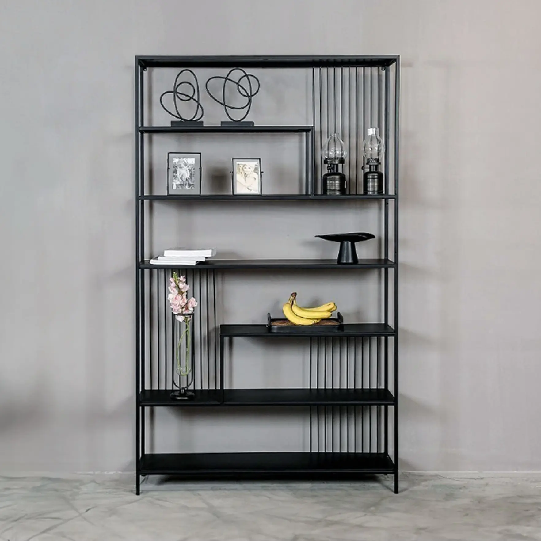 עשויה ברזל שחור בדוגמת פסים בגב הכוננית למראה אלגנטי ובעל נוכחות.