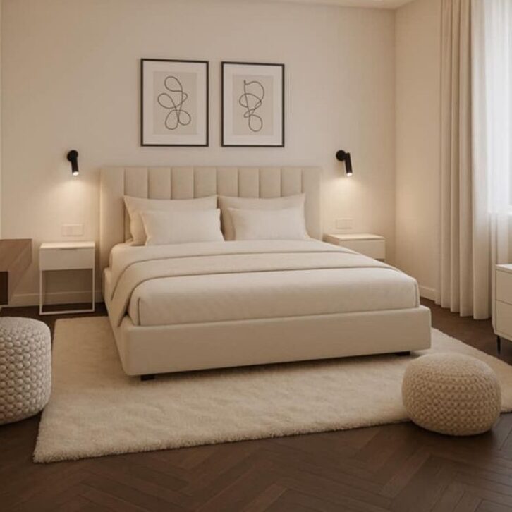 מרופדת בבד טקסטורה עדינה צבע שמנת (ניתן לפי בחירה אישית) קל לניקוי ואיכותי לאורך זמן