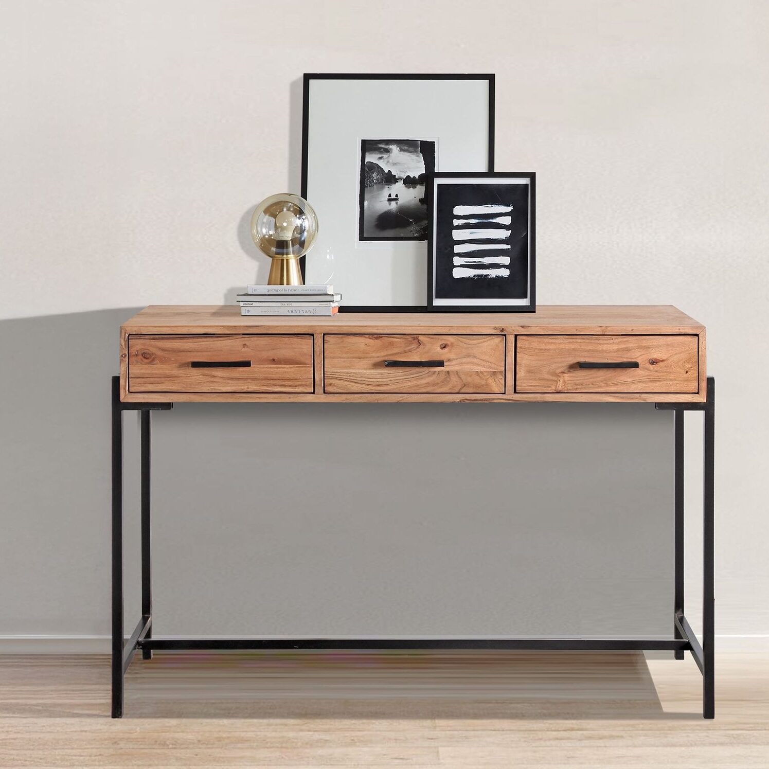 שלוש מגירות רחבות עם ידיות מתכת מעניקות מראה עכשווי ונועז, בעוד שהמסגרת הדקה והפתוחה שומרת על תחושת קלילות ויוקרה.