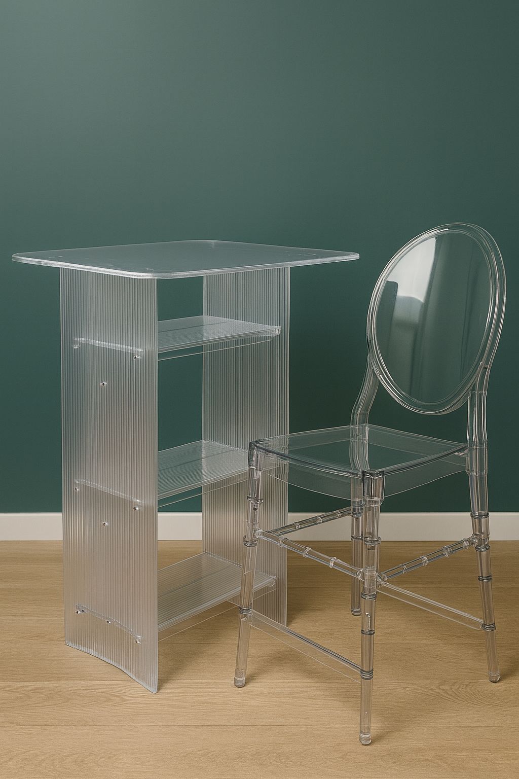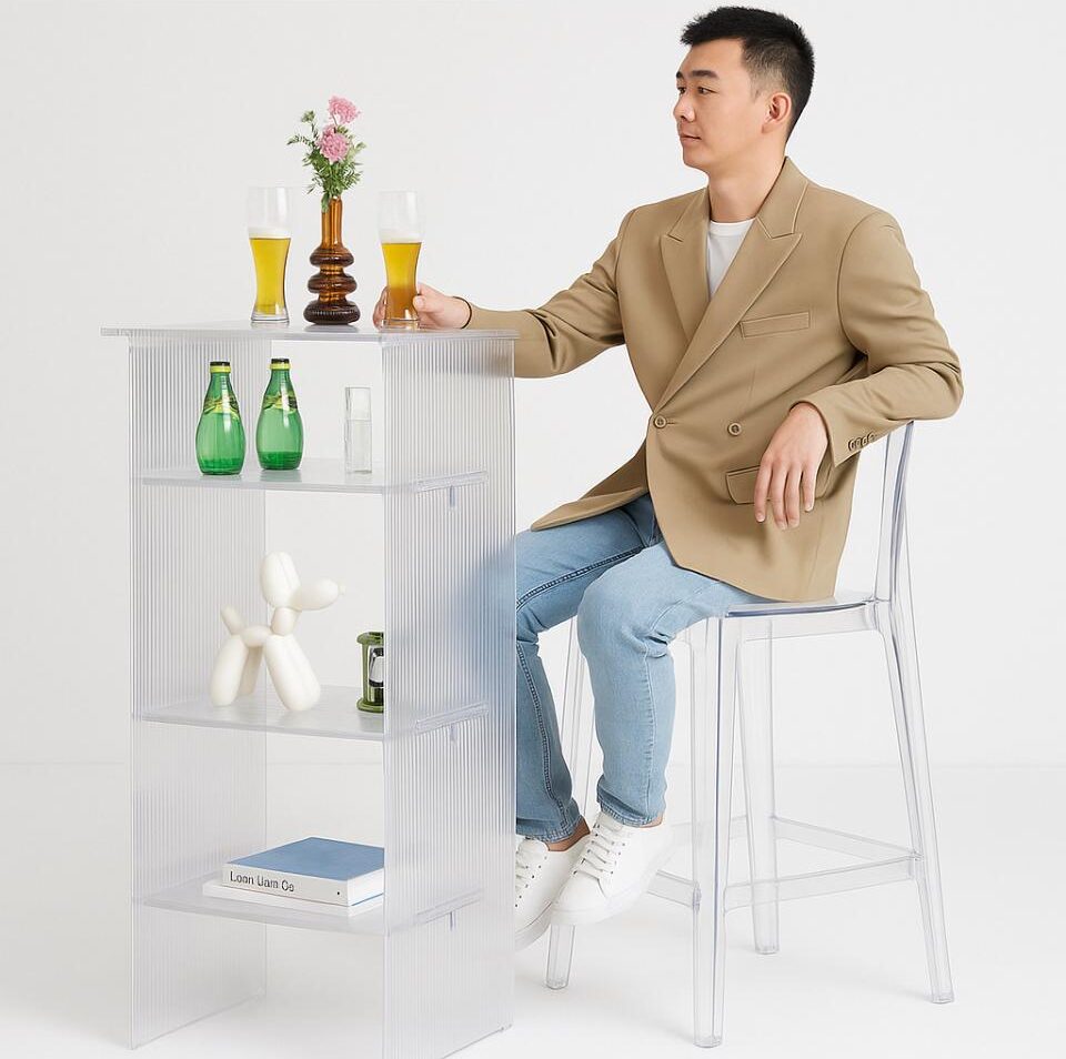 שולחן בר שקוף עם מדפים – עיצוב מודרני ואלגנטי