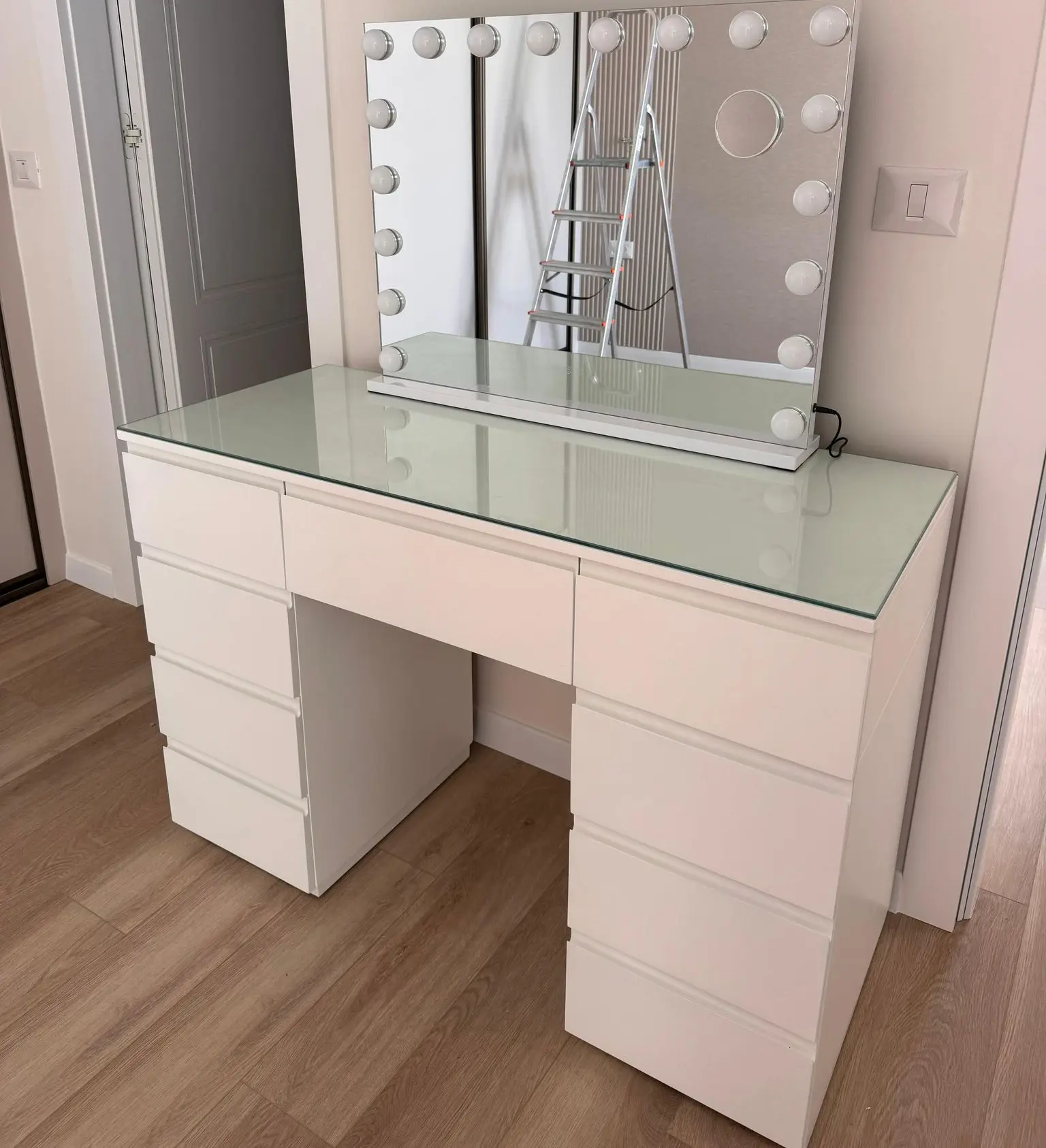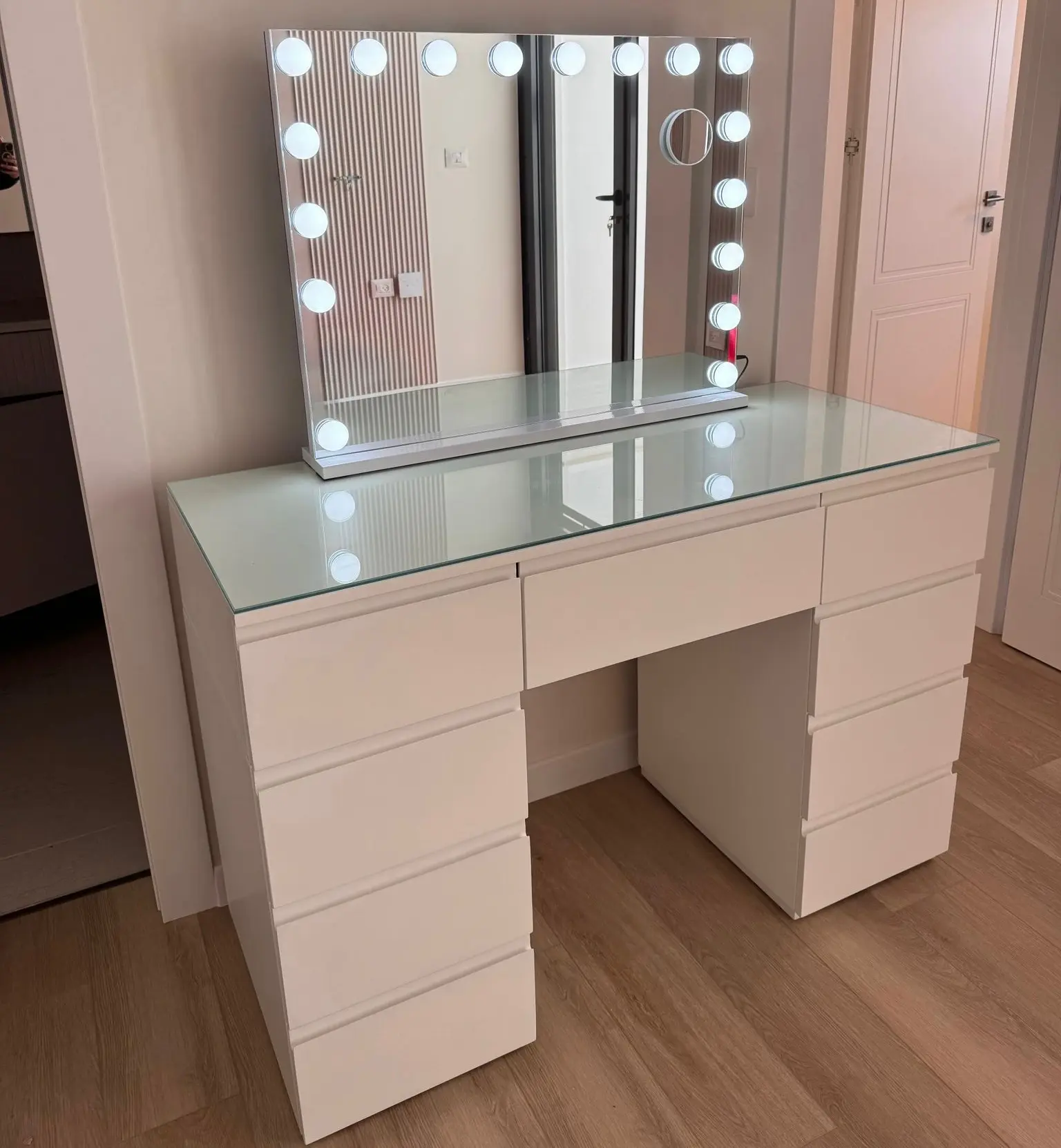 השידה משלבת פונקציונליות עם עיצוב מרשים, ומעניקה חוויית איפור נוחה ומקצועית בבית.