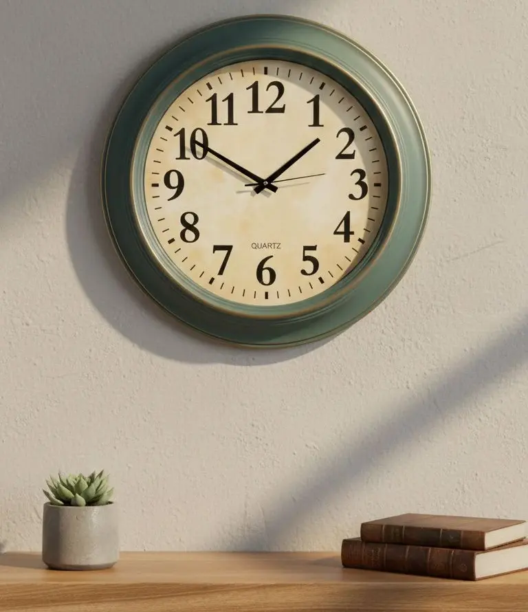 שעון קיר מרשים ואיכותי בגימור ירקרק ברונזה ייחודי, המעניק מראה קלאסי עם נגיעה וינטג’ית.